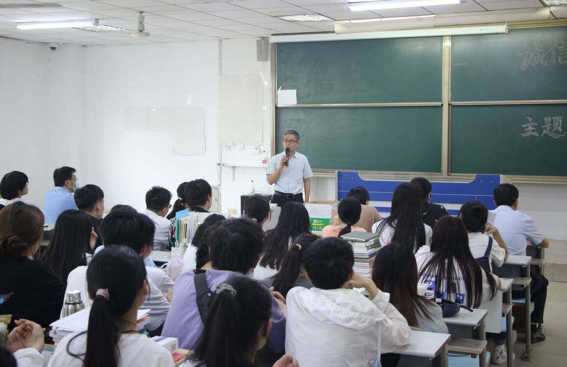 会上,党总支书记郭传鑫对同学们本学期的学习做出总结,并着重强调诚信考试、诚信做人的观念。“车无而辕而不行,人无信则不立。”大员工的诚信意识、诚信品质、诚信行为,关系到良好的社会风尚培育。要求全体同学要提高认识、规范言行,以诚信为本、以学识为基,认真复习,充分发挥,争取在考试中取得良好成绩。