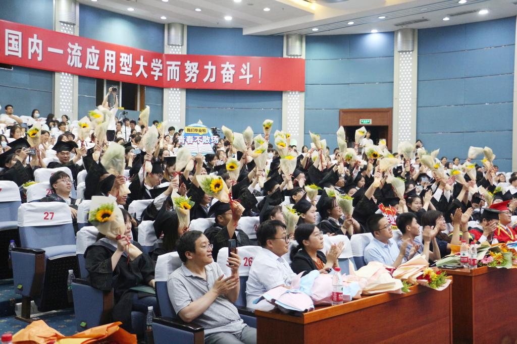 仪式上,获得学士学位的同学们依次上台,校党委委员、统战部部长林勇同志为他们拨穗正冠,并颁发学士学位证书和一束向日葵花,表达了对每一位员工的衷心祝贺,期盼员工在挥手告别学校后,成为一位有理想、有道德、有文化、有纪律的“四有青年”,并祝愿每位同学如盛开的向阳花,此去一生向阳,前程锦绣!