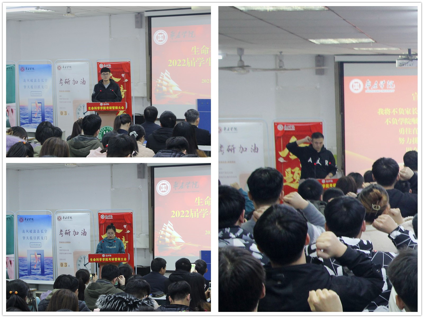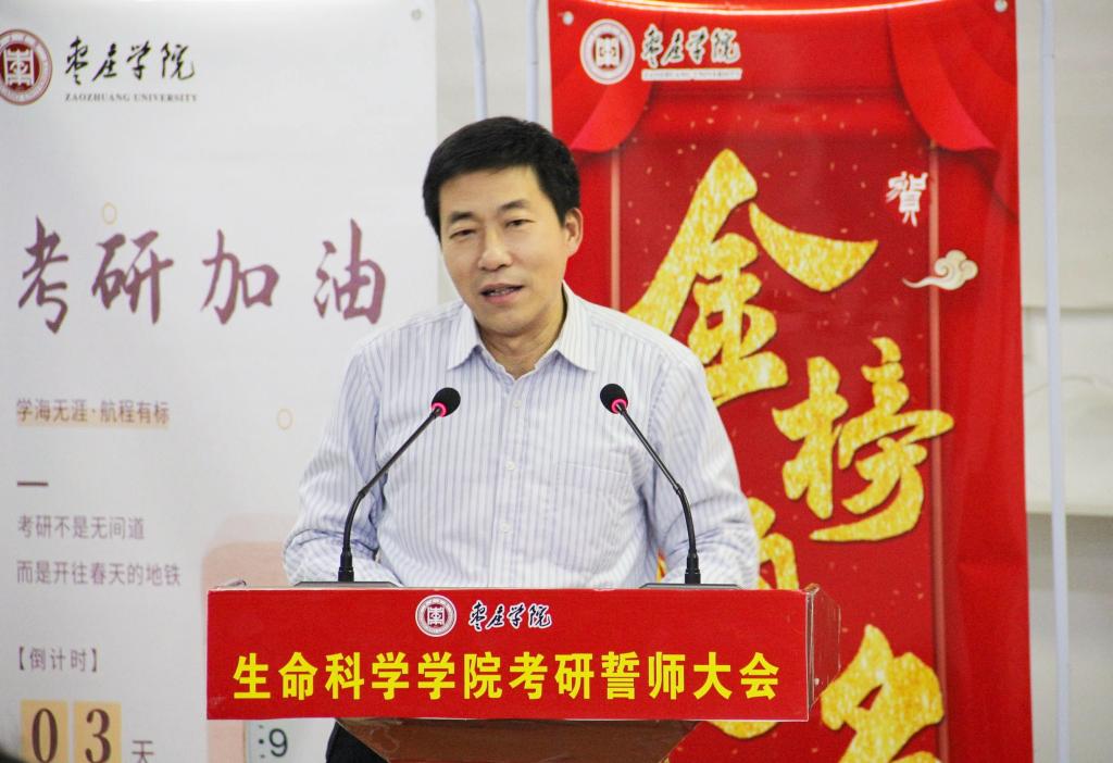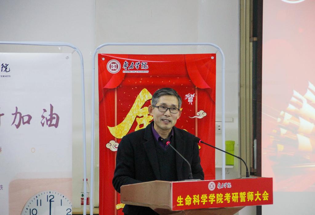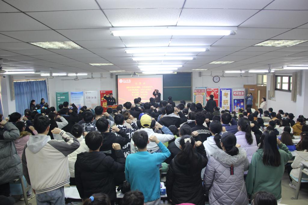 大会上,播放了来自在校生学弟学妹以及往届考研成功学长们的加油视频,李志军同学代表在校生送上对考研学子最真挚的祝福,崔荣慰同学代表全体考研学子感恩学校的培养与关怀,前院员工会主席杨深琳同学带领全体考研学子进行了慷慨激昂的宣誓,表示一定不辜负家长期盼,恩师厚望,勇往直前,决胜考场。