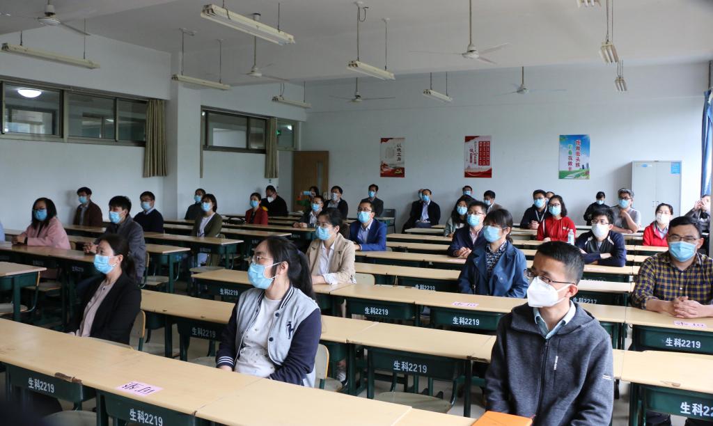 第二环节是新型冠状肺炎防控应急培训。院党总支副书记陈原国传达了学校新冠肺炎突发疫情防控应急处置人员培训的会议精神和会议内容,带领全院教职员工学习了新型冠状病毒防治知识,重点讲解了学校疫情防控技术方案,以及七步洗手法、口罩的正确佩戴、消毒液酒精的使用说明,并对学校突发疫情应急处置流程进行了详细解读。