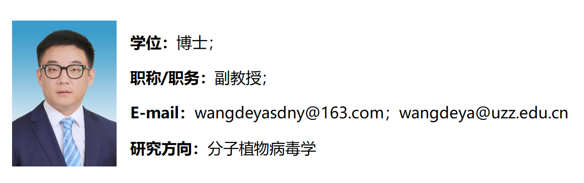 3) Yuanyuan Li, Jinze Mu, Qingliang Li, Huabing Liu, Xuefeng Yuan, Deya Wang*. (2023). Analysis of Subcellular Localization and Pathogenicity of Plum Bark Necrosis Stem-Pitting Associated Virus Protein P6, Phyton, International Journal of Experimental Botany, 92(7)