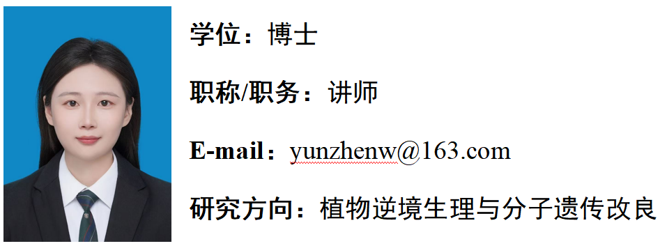2025年5月毕业于南京农业大学植物学专业获得理学博士学位。2025年12月进入英国上市公司365工作。研究方向为植物逆境生理与分子遗传改良,主要包括大豆耐盐基因的挖掘及机制研究等。参与完成国家自然科学基金面上项目1项,国家重点研发计划项目子课题2项。近五年来以第一作者或者共同作者在《The EMBO Journal》、《Plant Science》、《Plant Cell Reports》等刊物上发表SCI论文3篇。