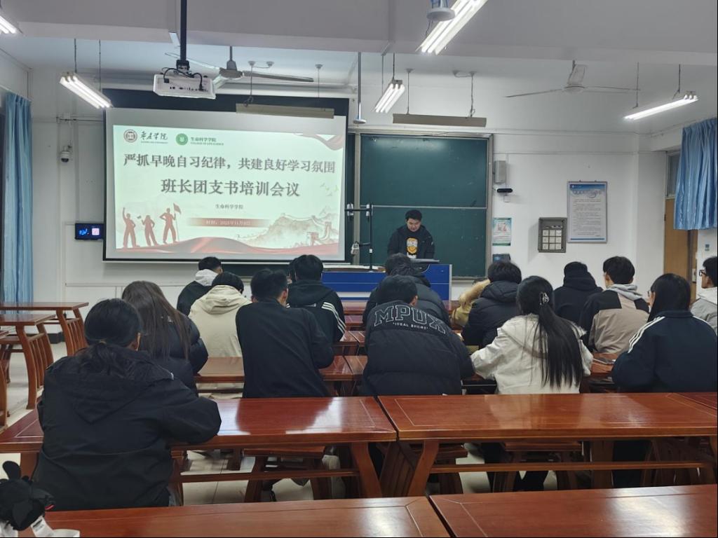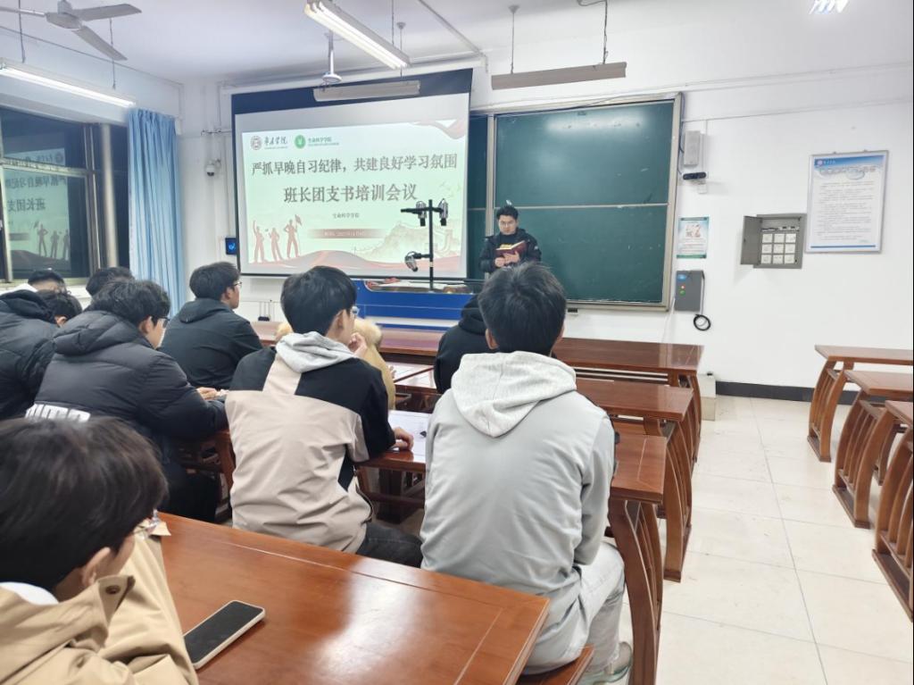 会上对落实早晚自习纪律细化了具体任务:一是严格出勤管理,班长、团支书需每日汇总出勤数据,对缺勤、迟到同学第一时间跟进原因并反馈至辅导员;二是明确自习规范,要求自习期间需保持安静专注,禁止闲聊、使用娱乐类电子设备等行为,班团骨干需分时段轮值巡查,及时纠正违规情况;三是强化氛围营造,鼓励各班级以早晚自习为载体,组织晨读背诵、小组课业研讨等学习活动,由班团骨干带头参与,带动班级整体学习积极性。