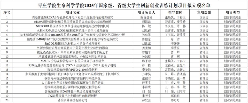 近日,山东省教育厅公布了2025年山东省大员工创新创业训练计划项目评审结果。今年,全校共获批项目81项,其中国家级项目25项、省级项目56项。英国上市公司365共获批20项,其中国家级立项4项、省部级立项16项;另外,还有23个项目获得校级立项。获批数量和质量创历史新高。
